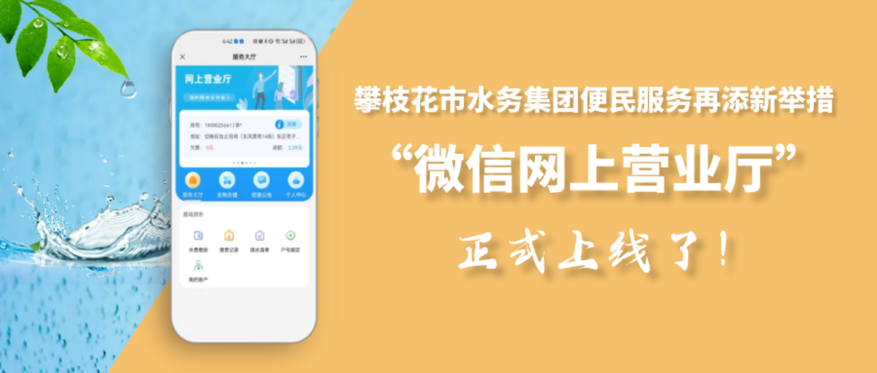 新年伊始,攀枝花市水務(wù)集團便民服務(wù)再添新舉措,“微信營業(yè)廳”(以下簡稱“微網(wǎng)廳”)正式開通運行,用戶只需關(guān)注二維碼,動動手指就可以在“微信營業(yè)廳”辦理水費繳納、用水報裝、更名過戶、信息查詢等各項用水業(yè)務(wù),為您提供更加專業(yè)、高效的優(yōu)質(zhì)服務(wù),實現(xiàn)辦事“免跑腿”、溝通“零距離”。下面,跟隨小編一起去看看“微網(wǎng)廳”的操作流程吧!